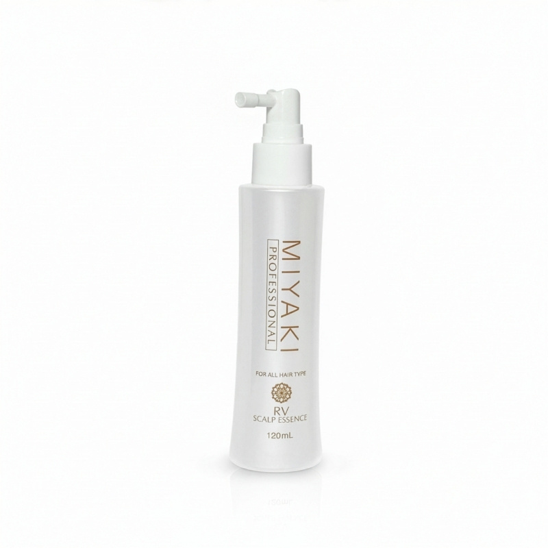 Miyaki RV Scalp Essence is a nourishing scalp treatment made with 7 plant-based ingredients that repair and protect against dryness and UV damage. Infused with nano-sized hydrolyzed hyaluronic acid and collagen, it deeply hydrates and locks in moisture. The addition of amino acids helps reduce irritation, preventing hair loss and split ends, for a healthy, strong scalp and hair.