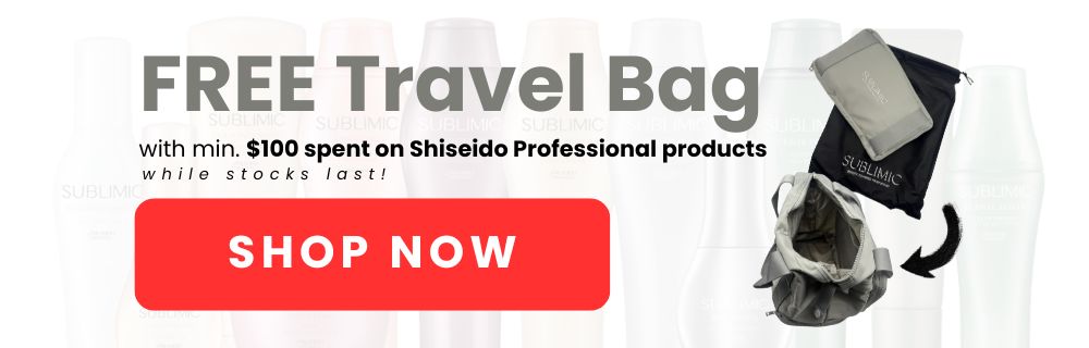 Thinking of trying the full range, or starting with just the shampoo and conditioner? Now’s the perfect time. With a minimum spend of $100 on Shiseido Professional products, you’ll receive a FREE Shiseido travel bag!